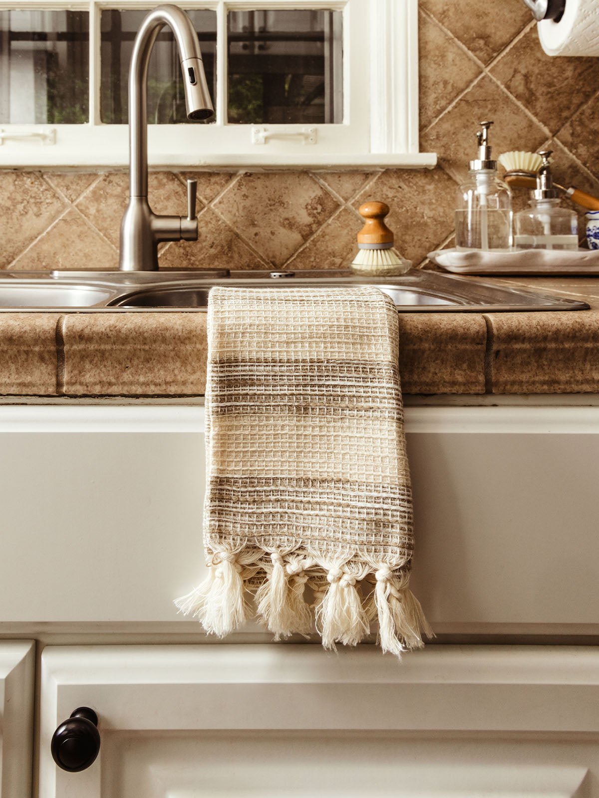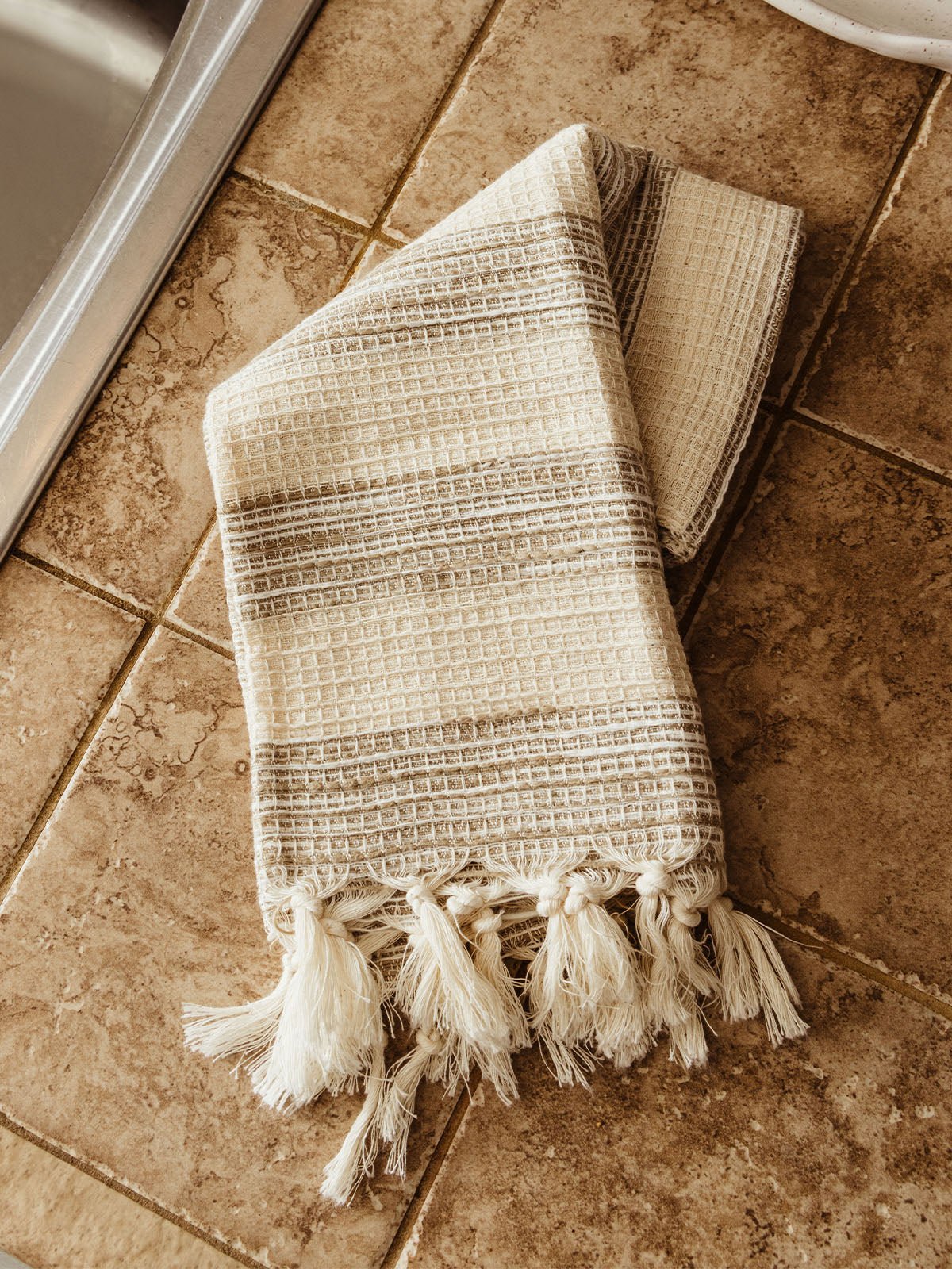 Elevate your everyday with the Gray Stripe Cotton Hand Towel with Fringe. a beautifully handwoven blend of craftsmanship and functionality. This towel is made from 100% hand-spun cotton. has alternating cloud gray and white stripes. and is woven on traditional wooden looms in rural India. Lightweight. ultra-soft. and quick-drying. it’s perfect for kitchen. bath. or guest use. Subtle fringe details add texture and charm. while your purchase helps preserve traditional weaving and supports dignified employment for artisans. breaking the cycle of poverty.