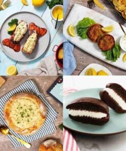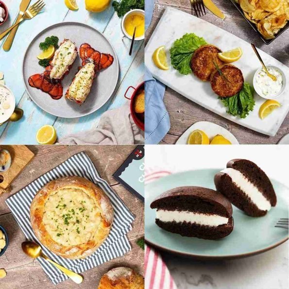 - Wild-caught Maine lobster tails and authentic Maine crab cakes